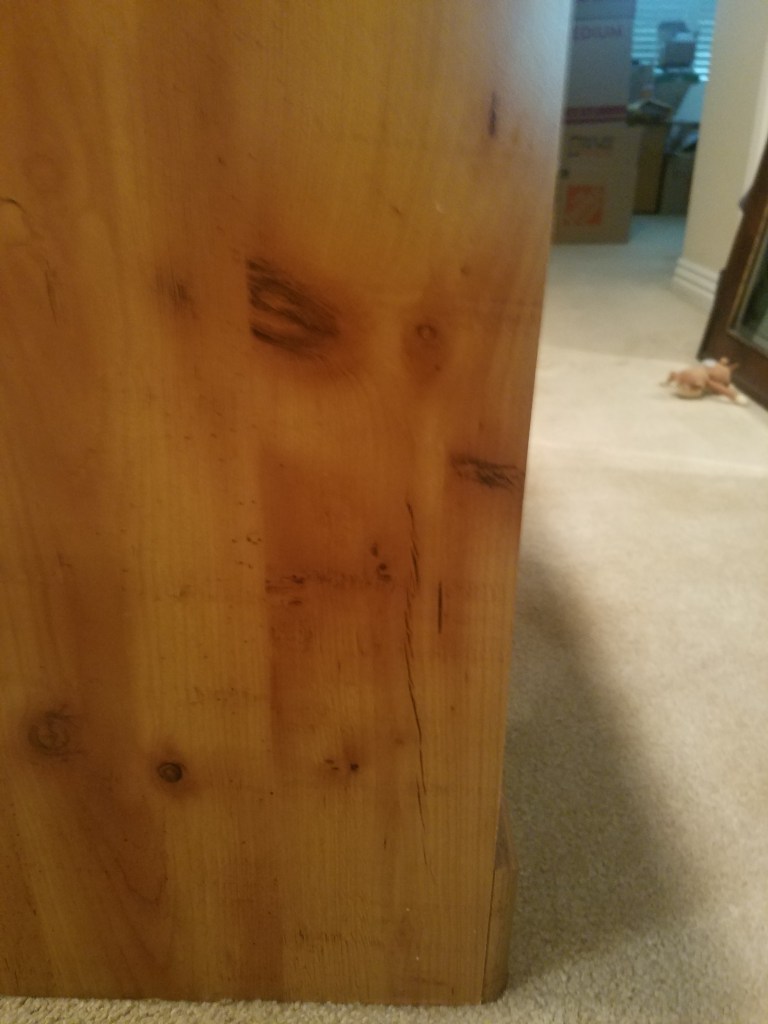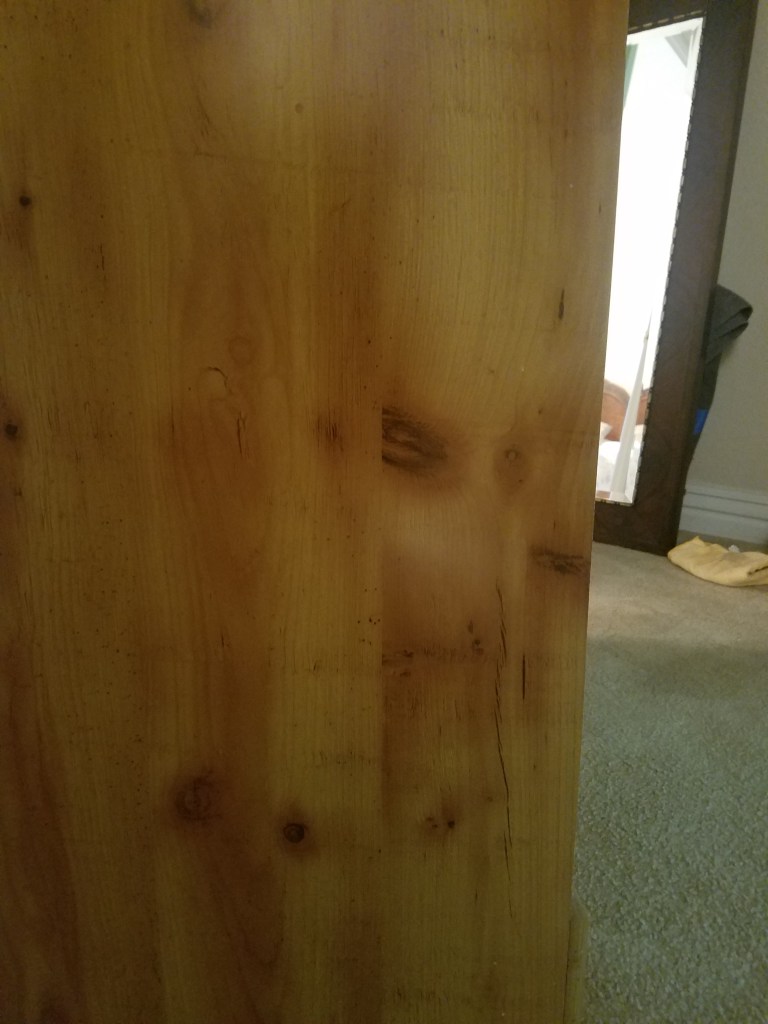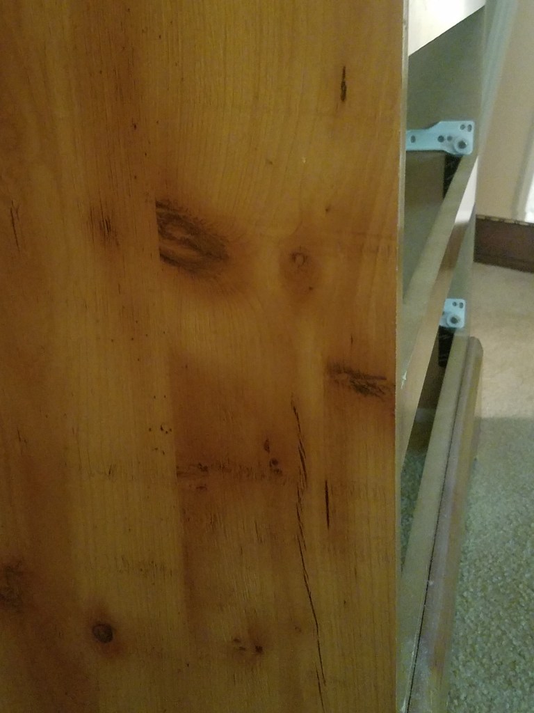 Story in English: I saw this image on my wooden chest in 2015, when I was reading in my Jerusalem Bible (gift from my mother I received on December 25 , 2006 ) the book of Genesis, for a moment I began to reflect and when I look up, I saw the sketch o a man’s face on the side of my wooden drawer chest, that was in my room. Days later I realized that it was the same on different sides of the wooden chest. But then I discovered that the same Image had appeared in another chest of the same wood and model that I had bought on a different date, in the same furniture store called ‘ Factory outlet ” in the city of Springfield, Missouri, United States. Is amazing how that image is captured in both wooden furniture, on the sides and also on top of them. Those images are still visible on my both wooden drawer chests. I believe that image is formed with the shadows or contrast of the wood grain of the furniture. In the image I see a man’s face with strong features, with long hair and beard. I believe only God can do something like this.